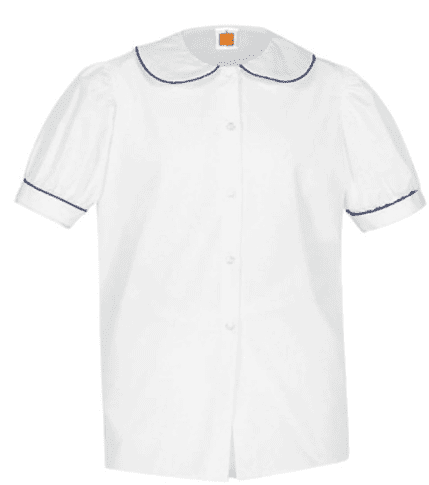 Girls Puffed Short Sleeve Blouse with Navy Piping